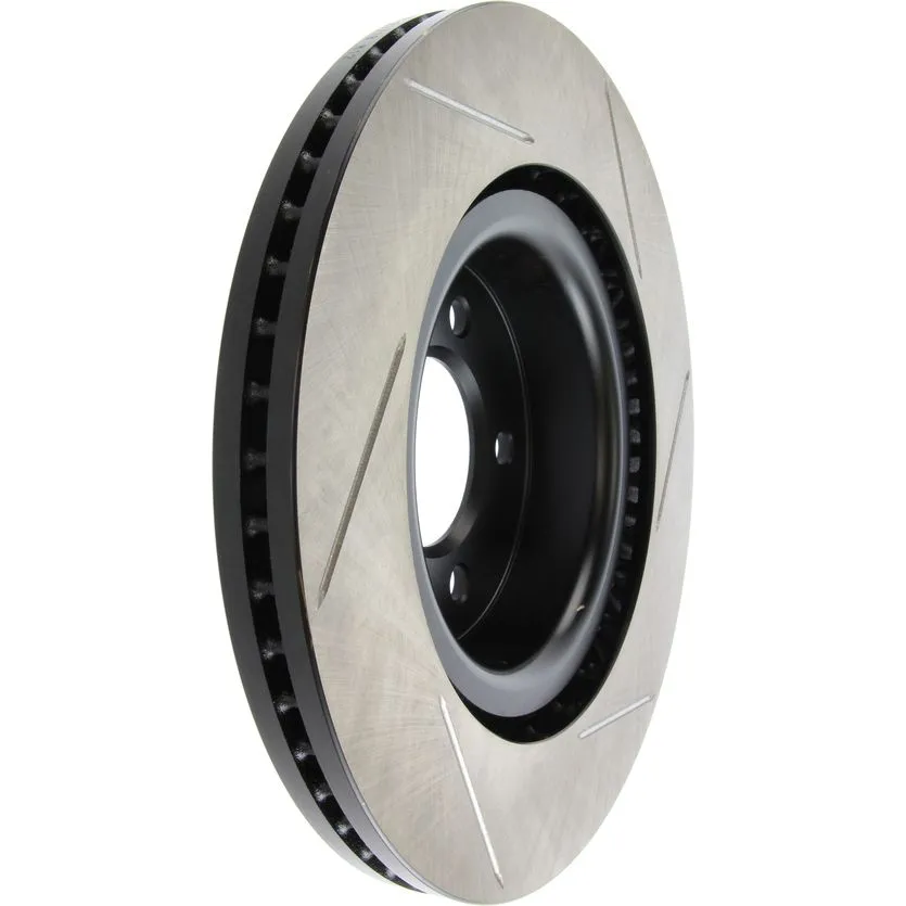 StopTech Slotted Sport Rotors are 1-piece direct replacement brake discs for factory brake systems and stock calipers that look great behind your wheels – and offer significantly improved braking performance. The unique slotting aids with heat and brake dust dispersal; prevents glazing of the pads; adds bite and improves wet and dry braking performance. Built to last; the black e-coating provides protection from corrosion and the high carbon metallurgy (in most applications) offers quieter operation; better crack resistance and increased performance.
