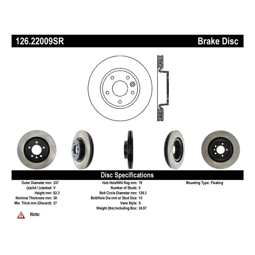 126.22009SR – StopTech Sport Slotted Brake Rotor; Front Right