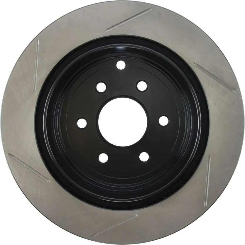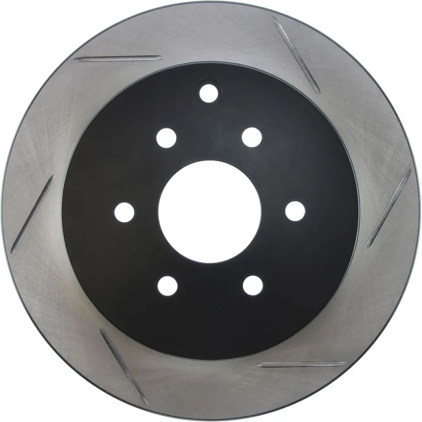 StopTech Slotted Sport Rotors are 1-piece direct replacement brake discs for factory brake systems and stock calipers that look great behind your wheels – and offer significantly improved braking performance. The unique slotting aids with heat and brake dust dispersal; prevents glazing of the pads; adds bite and improves wet and dry braking performance. Built to last; the black e-coating provides protection from corrosion and the high carbon metallurgy (in most applications) offers quieter operation; better crack resistance and increased performance.