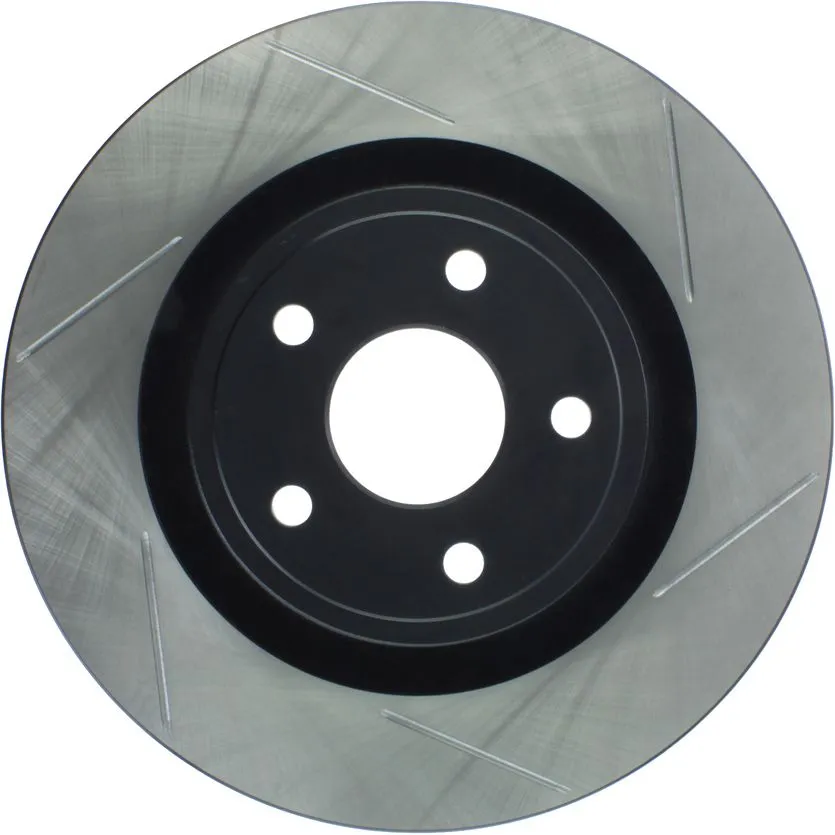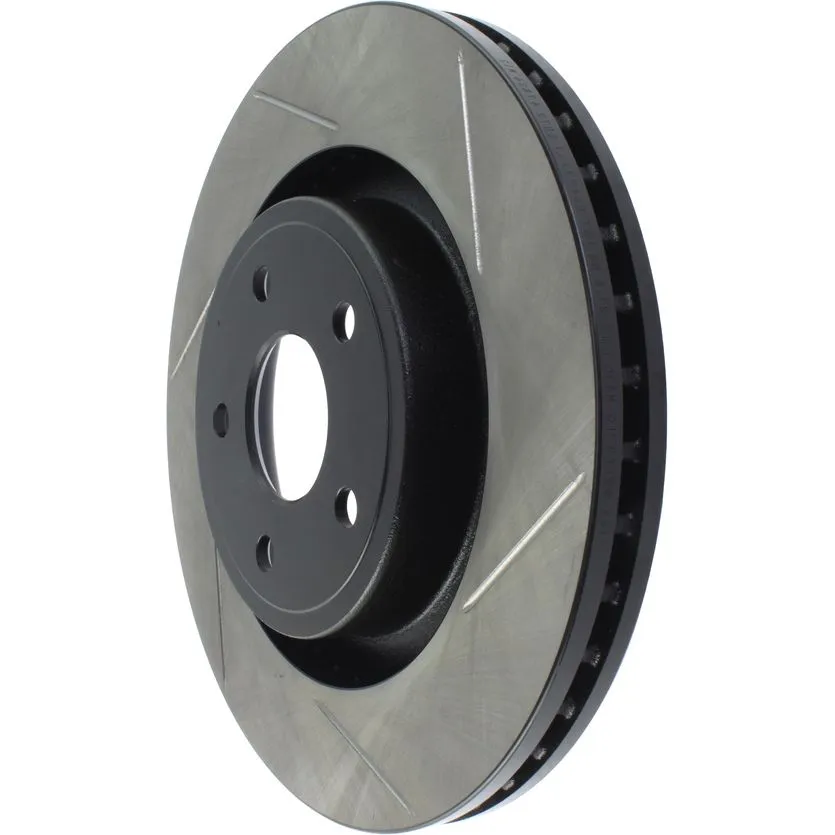 StopTech Slotted Sport Rotors are 1-piece direct replacement brake discs for factory brake systems and stock calipers that look great behind your wheels – and offer significantly improved braking performance. The unique slotting aids with heat and brake dust dispersal; prevents glazing of the pads; adds bite and improves wet and dry braking performance. Built to last; the black e-coating provides protection from corrosion and the high carbon metallurgy (in most applications) offers quieter operation; better crack resistance and increased performance.