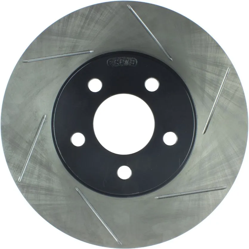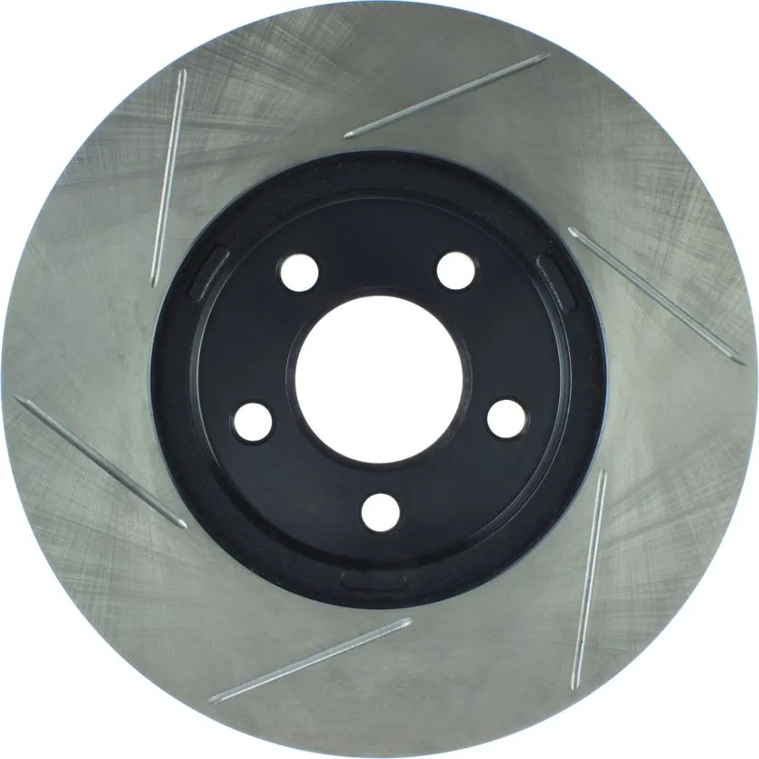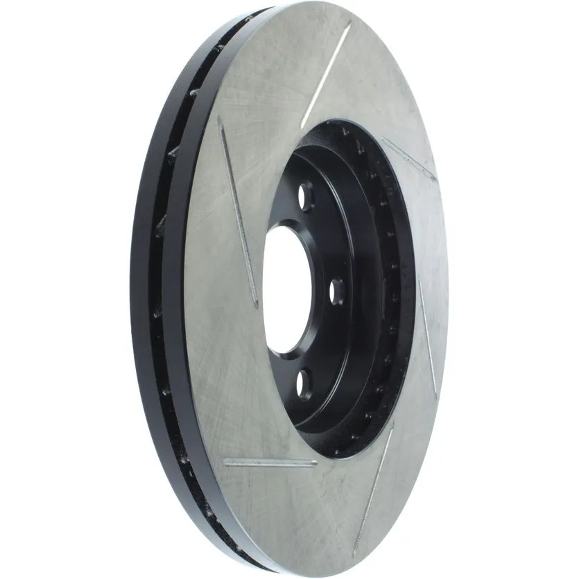 StopTech Slotted Sport Rotors are 1-piece direct replacement brake discs for factory brake systems and stock calipers that look great behind your wheels – and offer significantly improved braking performance. The unique slotting aids with heat and brake dust dispersal; prevents glazing of the pads; adds bite and improves wet and dry braking performance. Built to last; the black e-coating provides protection from corrosion and the high carbon metallurgy (in most applications) offers quieter operation; better crack resistance and increased performance.