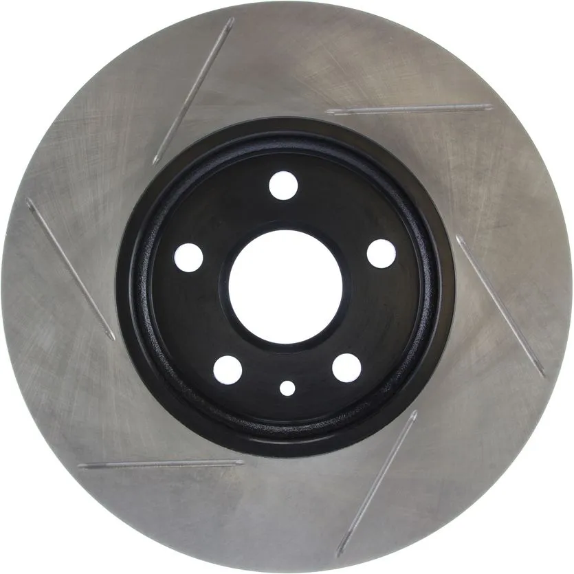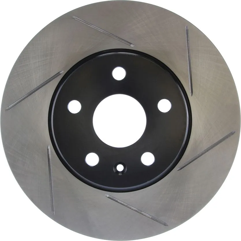 StopTech Slotted Sport Rotors are 1-piece direct replacement brake discs for factory brake systems and stock calipers that look great behind your wheels – and offer significantly improved braking performance. The unique slotting aids with heat and brake dust dispersal; prevents glazing of the pads; adds bite and improves wet and dry braking performance. Built to last; the black e-coating provides protection from corrosion and the high carbon metallurgy (in most applications) offers quieter operation; better crack resistance and increased performance.