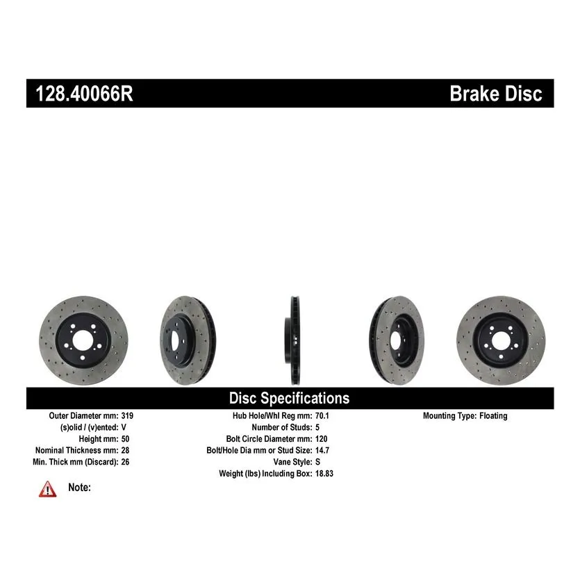 128.40066R – StopTech Sport Cross Drilled Brake Rotor; Front Right