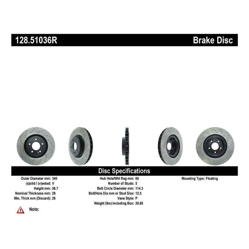 128.51036R – StopTech Sport Cross Drilled Brake Rotor; Front Right